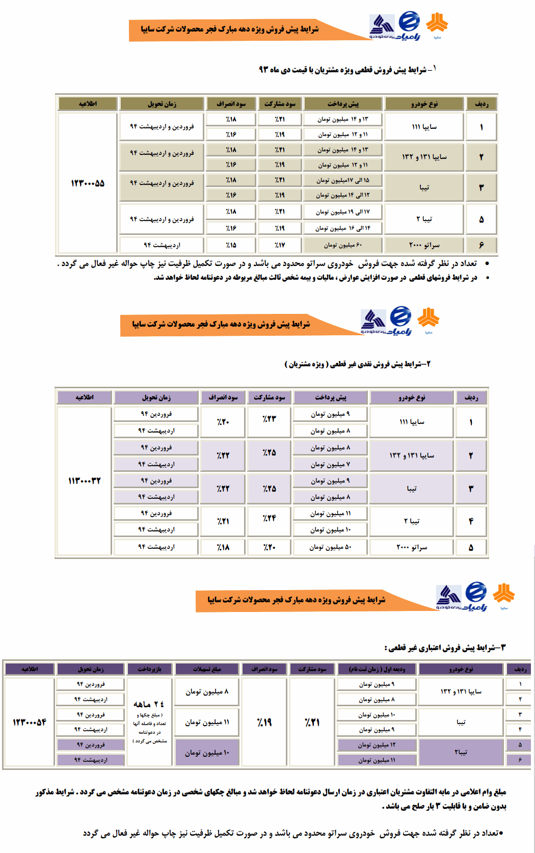 آغاز پیش فروش "سایپا" بمناسبت دهه فجر +جدول