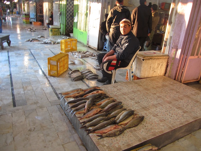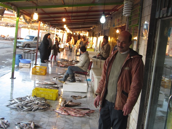 میان تب و تاب فروش ماهی های دریای شمال، چند بساط میوه و سبزی هم در این بازار به چشم می خورد. ورود و خروج ماشین های سواری و پارک کردن آن ها در محیط بازار به یک امر عادی تبدیل شده و تردد در آن از قانون خاصی پیروی نمی کند.