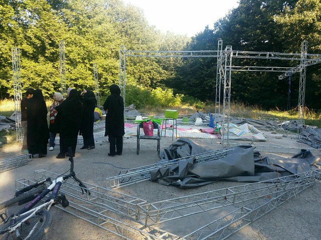 جمع آوری خیمه نمازگزران محله سروش توسط شهرداری گرگان
