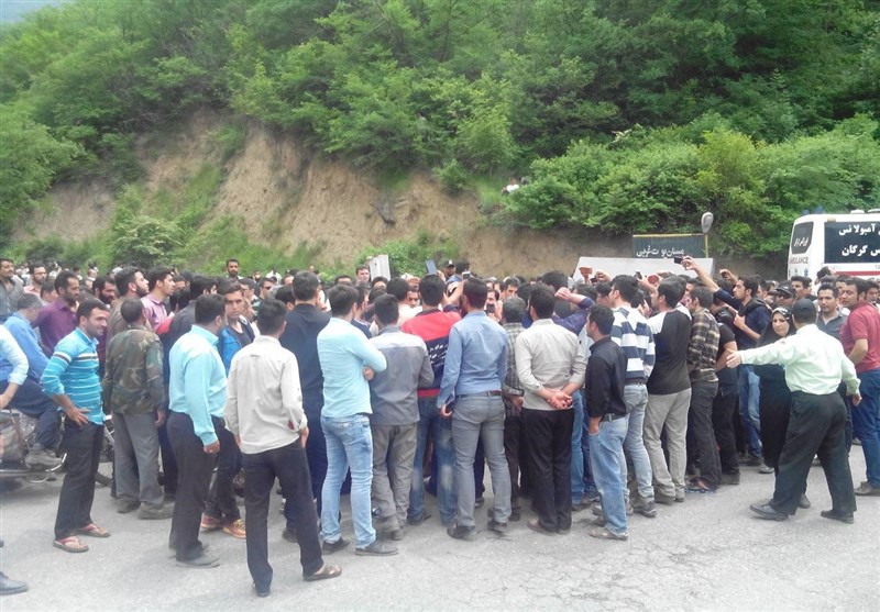 لحظاتی پیش حسن روحانی در جمع معدنچیان در محل فاجعه یورت آزادشهر حاضر شد اما اعتراض‌های کارگران سبب شد روحانی محل معدن را ترک کنند.