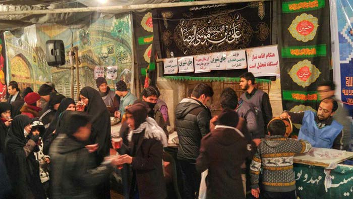 در این ایستگاه صلواتی بزرگ از عزاداران حسینی و زائرین و میهمانان امام رضا ع با پذیرایی های مختلف ناهار ، صبحانه ، چای شیرین و ... بصورت گسترده و مستمر پذیرایی بعمل می آید .
