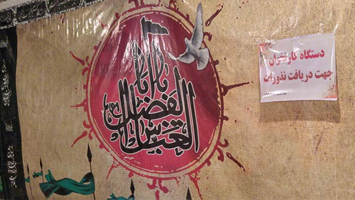نکته جالب توجه در محل برپایی این ایستگاه صلواتی ؛ نصب بنر بزرگ و زیبای 5 شهید مدافع حرم استان گلستان در بالای جایگاه این ایستگاه است .