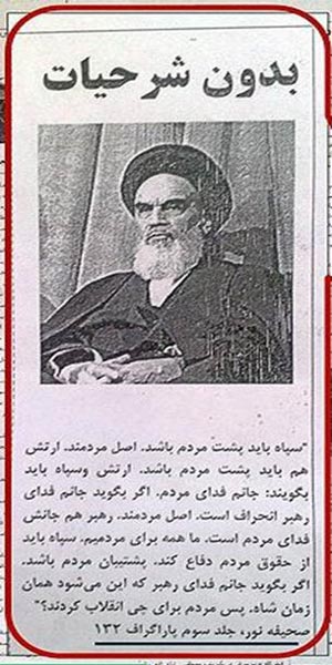 اگر بیننده این عکس کوچکترین آشنایی با صحیفه امام داشته باشد میداند که جلد سوم صحیفه امام اصلا مربوط به زمان قبل از انقلاب است و اصلا آن زمان سپاهی وجود نداشته است در همان زمان هم موسسه تنظیم و نشر آثار امام خمینی (ره) کذب بودن این مطلب را تایید کرد.