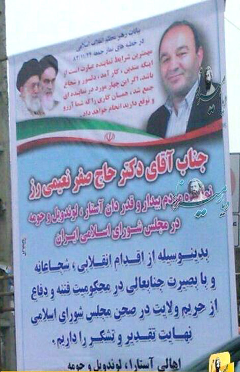 دنياي وارونه سياست در ايران امروز / بنر تشکر از نماینده بخاطر حمله به مطهری!