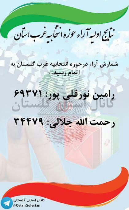 به گزارش پایگاه عدالت خواهان گلستان"رامین نورقلی پور در حوزه انتخابیه کردکوی، بندرگز، بندرترکمن و گمیشان از رقیب خود در دور دوم انتخابات مجلس دهم پیشی گرفت.