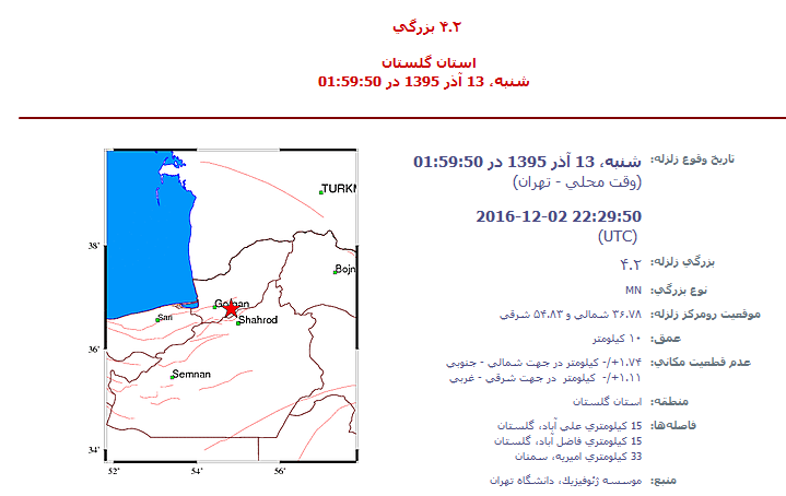زمین لرزه ۴.۲ ریشتری علي آباد، گلستان را لرزاند