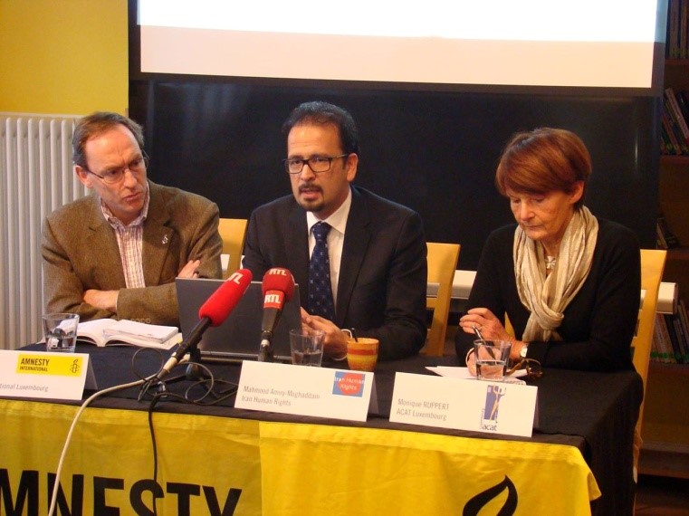 خانم راپرت از سازمان acat ، محمود امیری مقدم از سازمان حقوق بشر ایران و بنت اریخسن، نماینده سازمان عفو بین‌المل