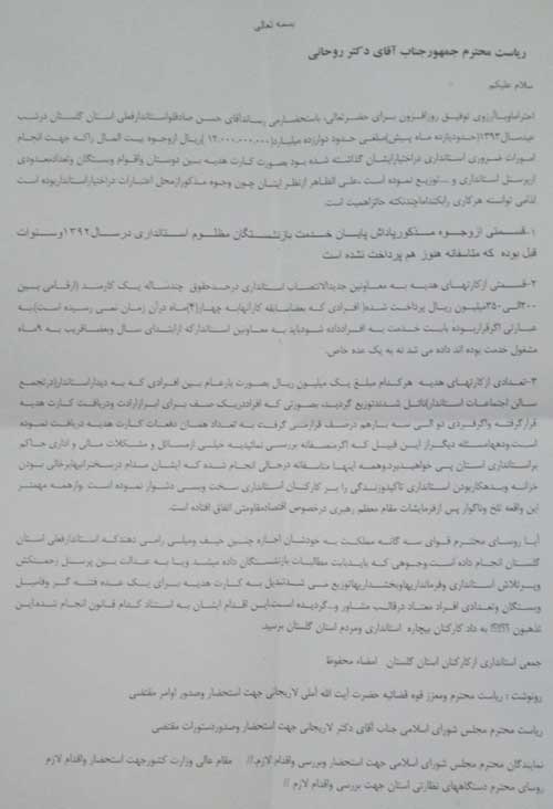 نامه تعدادی از مدیران سابق استانداری گلستان به حسن روحانی در خصوص سیاسی کاری مسئولان فعلی دولت در گلستان + سند