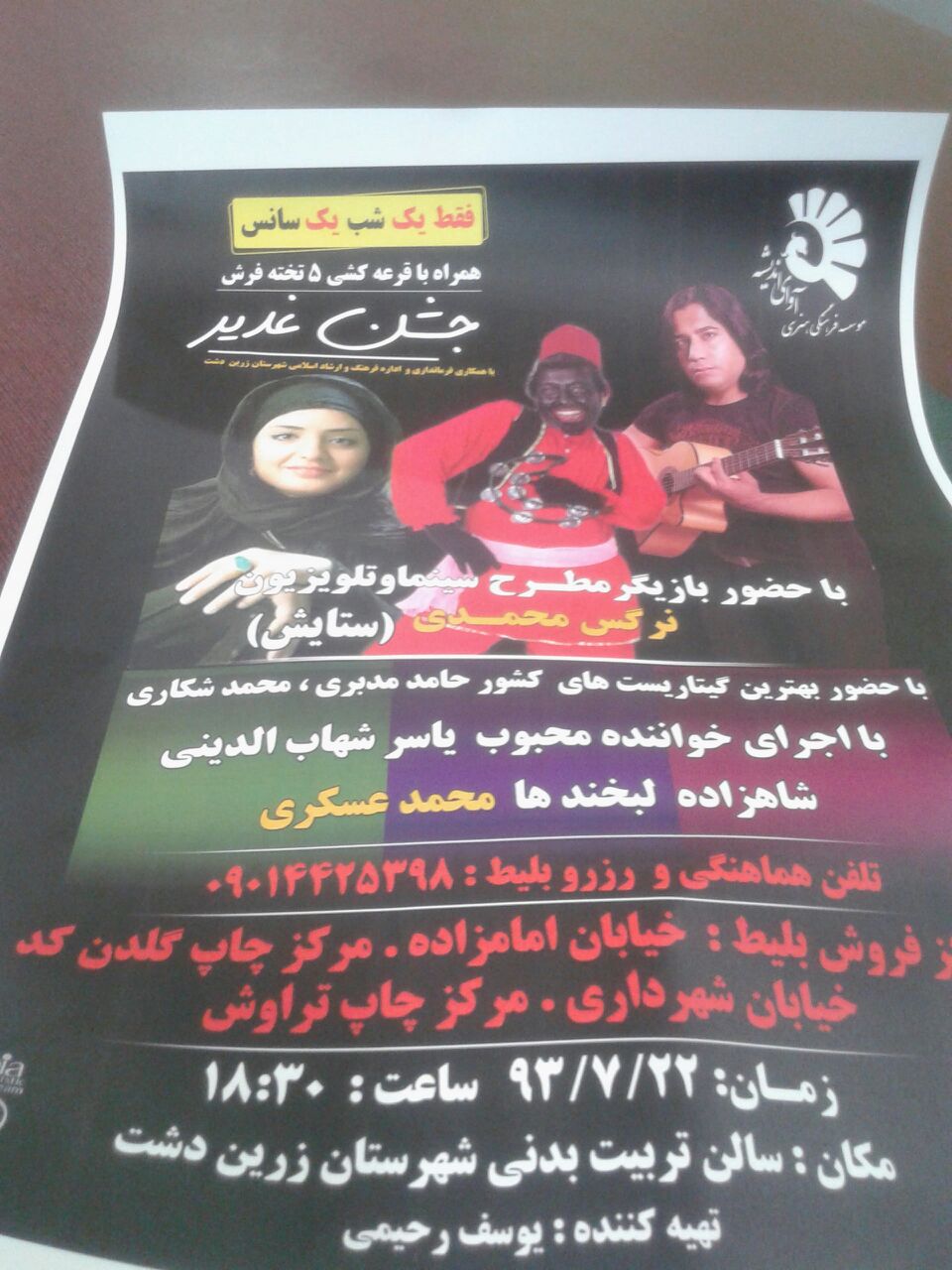یکی از رسانه ها درباره حضور یکی از بازیگران سینما و تلویزیون این گونه نوشت: "مراسم جشن عید غدیر در شهر حاجی‌آباد مرکز شهرستان زرین‌دشت استان فارس، به خاطر قهر مهمان اصلی به بر هم ریختن سالن توسط حاضران منتهی شد.