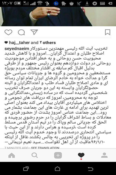 مشروح مطلب منتشر شده اینستاگرامی به قرار زیر است: