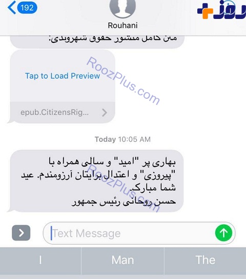 به گزارش پایگاه عدالت خواهان" ، متن پیامک نوروزی حسن روحانی که برای دارندگان خطوط تلفن همراه ارسال شده، به شرح زیر است: