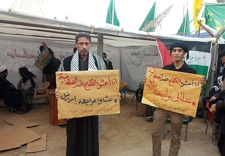 این کمپین، خیمه ای در عمود ۲۸۵ برپا کرده و افراد ضمن امضای این کمپین، با نوشته های فارسی، عربی و انگلیسی «من عاشق مبارزه با اسرائیل هستم» عکس یادگاری می گیرند و در فضای مجازی به اشتراک می گذارند.