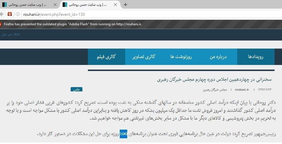تصویر این خبر که از سایت حسن روحانی استخراج شده، در زیر قابل مشاهده است.