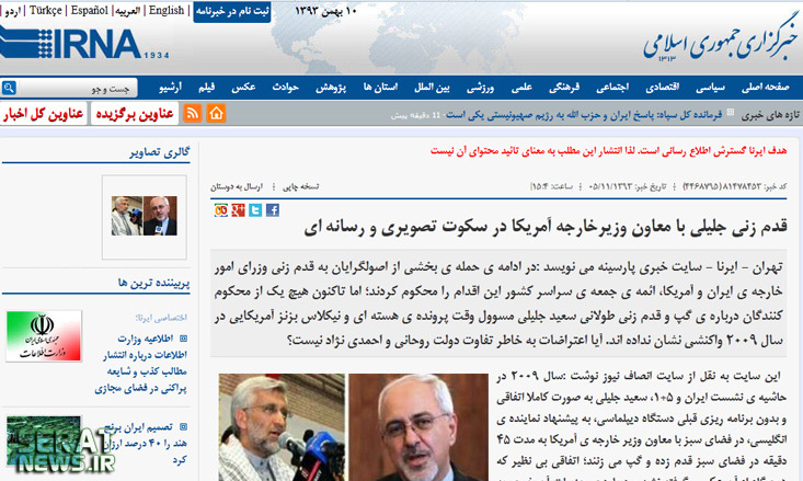خبر دروغ قدم زدن جلیلی و برنز در خبرگزاری رسمی دولت با عناوین مختلف، چند بار منتشر شده است: