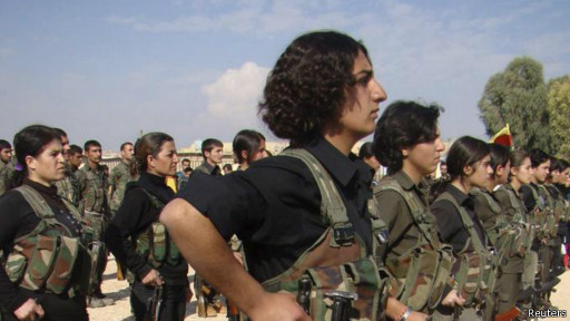 بسیاری از تحلیلگران انتشار عکسهایی از کوبانی که زنان کُرد را در حال مسلح شدن نشان میدهد، اقدامی نمایشی و برای جلب ترحم و حمایتهای بینالمللی قلمداد کرده اند. این در حالی است که تاکنون جمعیت بسیاری از کردهای کوبانی به جای مقاومت و حفاظت از کوبانی، از این شهر فرار کرده اند.
