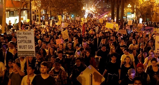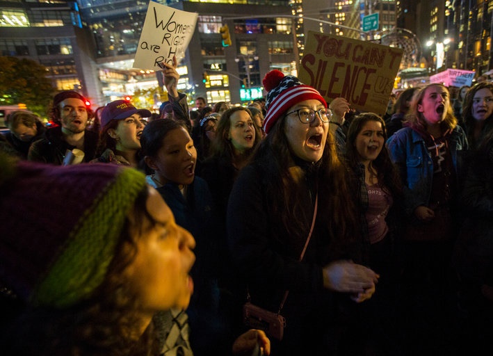 به گزارش روزنامه نیویورک تایمز، ساعاتی بعد از اعلام نهایی نتایج انتخابات ریاست جمهوری ایالات متحده، هزاران تن از هوادارن هیلاری کلینتون، در اعتراض به انتخاب «دانلد جی. ترامپ»، به خیابان‌ها آمدند که تا ساعاتی از صبح پنجشنبه هم به طول انجامید. گرچه طبق گزارش‌ها عمدتا این تجمعات صلح آمیز بود.