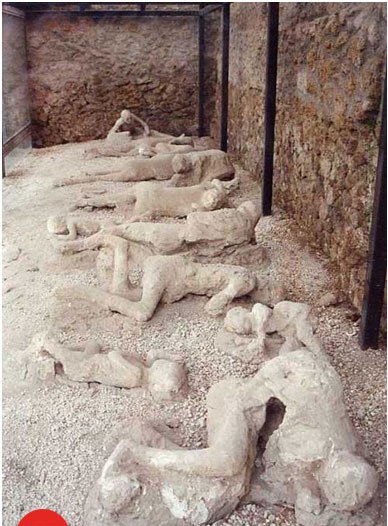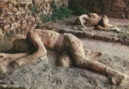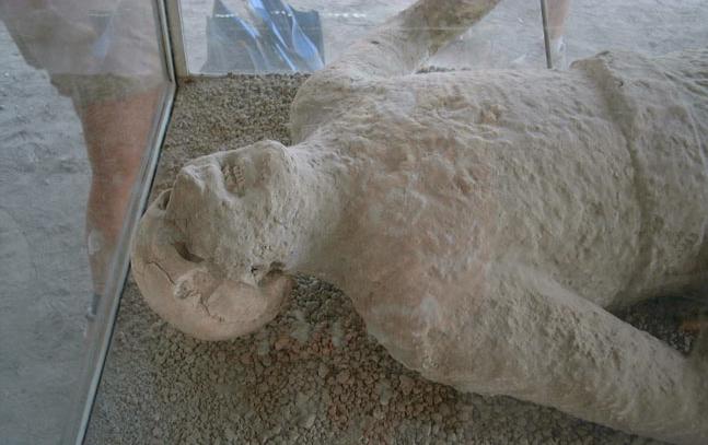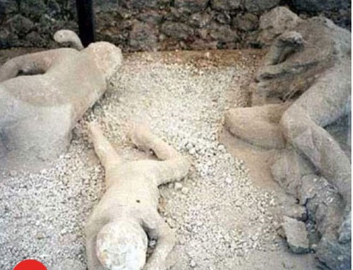 جالب ترین جنبه این حادثه آن است که هیچ کس نتوانسته است در مقابل فوران آتشفشان وحشتناک وزوو بگریزد. یک خانواده در حال صرف غذا در یک لحظه تبدیل به سنگ شده اند. زوج های بسیاری پیدا شدند که در حین انجام عمل مقاربت تبدیل به سنگ شده بودند.