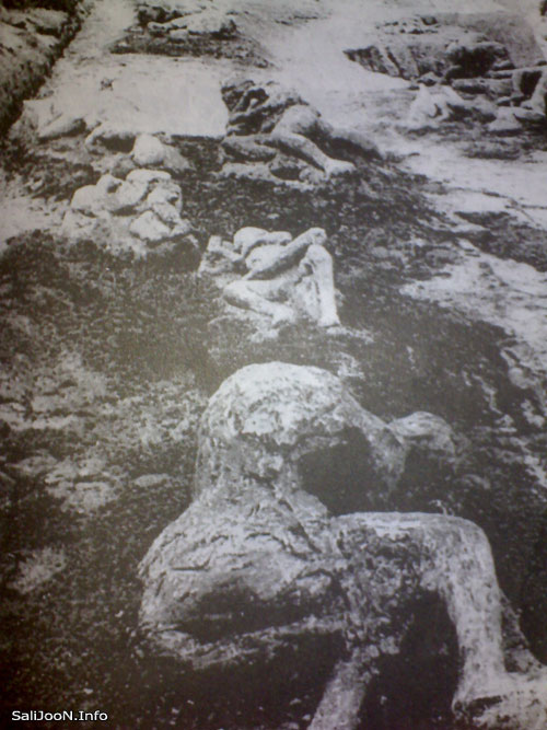 ابتدا مواد مذاب شهر را محاصره و زیر خود دفن کرد و طوفان آب بلافاصله بعد از آن آمد و آن را خاموش کرد تا انسان ها با سوختن از میان نروند و به شکلی که در تصاویر می بینید برای آیندگان و عبرت آنها باقی ماندند.