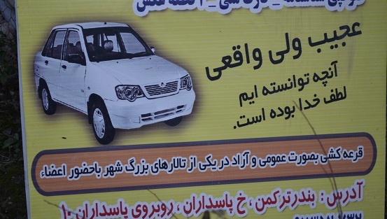 در این خبر اعلام شد ( پراید = 75000هزار تومان !! )شرکت خدمات بازرگانی سایان تجارت خودرو دفتری را در یکی از خیابانهای بندرترکمن دایر و از متقاضیان شرکت در قره کشی خودرو میخواهد مبلغ 75000تومان را بحساب شرکت مذکور واریز نمایند